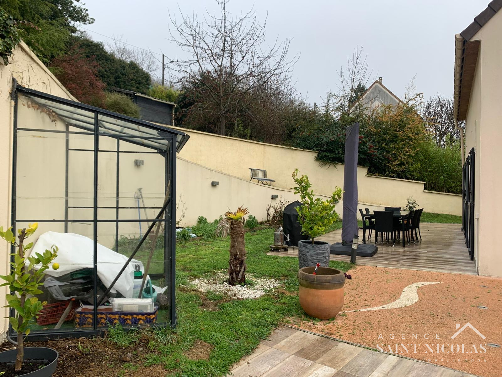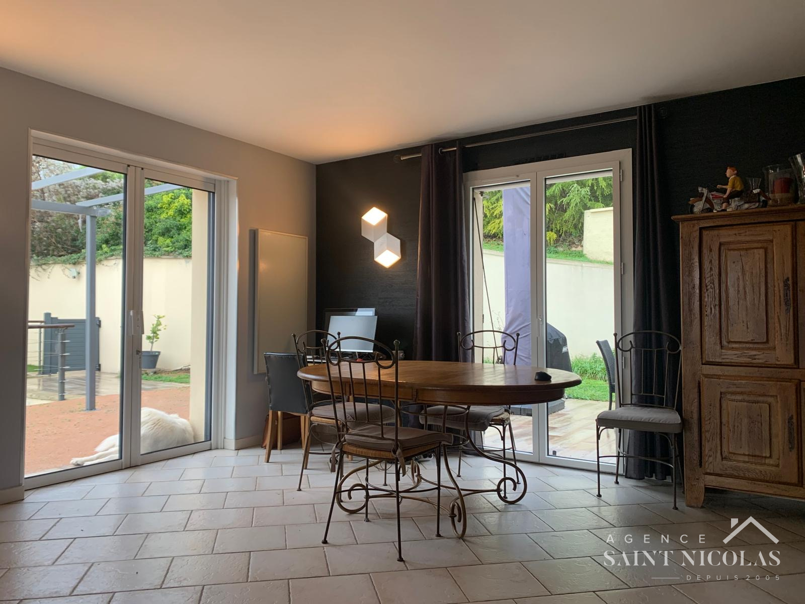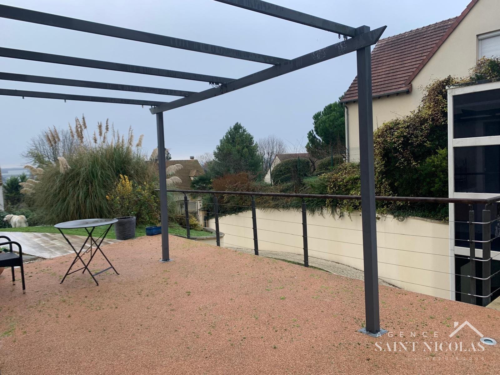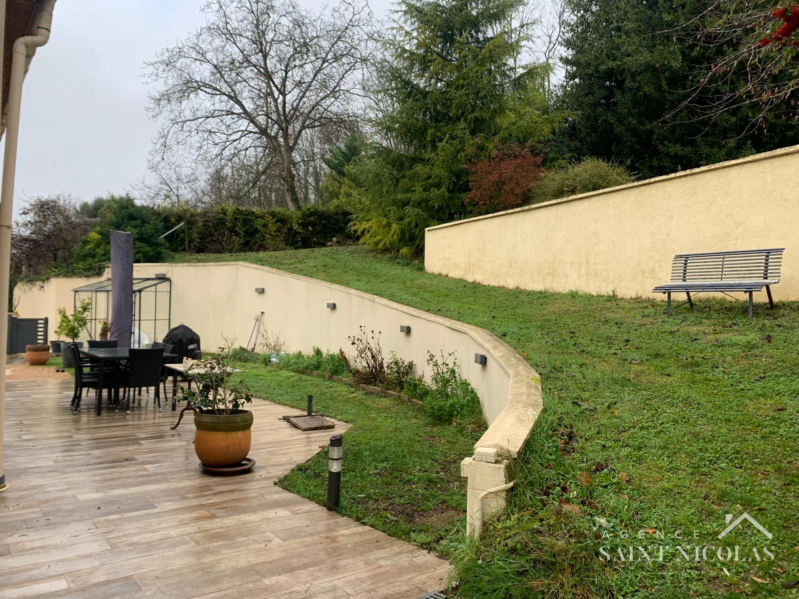 Au calme d'une impasse, dans un secteur résidentiel de MEULAN EN YVELINES, l'AGENCE SAINT NICOLAS de MEULAN EN YVELINES vous propose cette villa contemporaine de 2003 remarquable par ses volumes et la qualité de son agencement. L'accessibilité a été étudiée pour faciliter la vie des personnes à mobilité réduite : portails et porte d'entrée télécommandées, accès par une rampe douce ou par un ascenseur. Une large terrasse panoramique ceinture la maison, offrant de jolies perspectives sur la vallée de la SEINE. De plain-pied avec la terrasse , vous accédez à un espace de réception de près de 60 m2 composé d'un hall d'entrée, un salon salle à manger largement ouvert sur l'extérieur avec sa triple exposition, chaleureux avec son poêle à bois, une cusine équipée familiale, ouverte également sur une terrasse bien abritée et sans vis à vis. Une suite aménagée pour personne PMR complète le rez de chaussée. L'étage accueille trois grandes chambres dont une suite parentale de 21 m2 avec son dressing aménagé, une salle de bain moderne avec douche à l'italienne et baignoire d'angle. Le sous-sol total abrite un garage 2 voitures, une pièce éclairée d'une fenêtre facilement aménageable en salle de jeux ou home vidéo, une buanderie. La maison offre un niveau d'équipement domotique qui sort du commun et des équipements qui favorisent les économies d'énergie : double vitrage récent, ballon thermodynamique, poêle à bois d'excellent rendement. Le jardin en terrasses, de 1200 m2 facilement accessible grâce à des rampes douces, offre des espaces propices à la détente et un coin verger. Outre le garage,2 voitures en sous sol, vous pourrez stationner jusqu'à 3 voitures dans la propriété et une voiture à l'abri d'un auvent. L'emplacement est idéal à deux pas de la Gare de THUN LE PARADIS - PARIS SAINT LAZARE en 45 minutes- et des arrêts de bus pour POISSY et SAINT GERMAIN EN LAYE.Les famiiles apprécieront la proximité des écoles maternelles et primaires PAUL VALERY et SAINT PAUL, ainsi que du collège MERCIER. Le centre ville de MEULAN est réputé pour la qualité de son commerce de proximité et dispose de toute l'offre nécessaire en matière de santé et d'équipements sportifs. Une maison de famille habitable sans travaux à découvrir sans tarder !