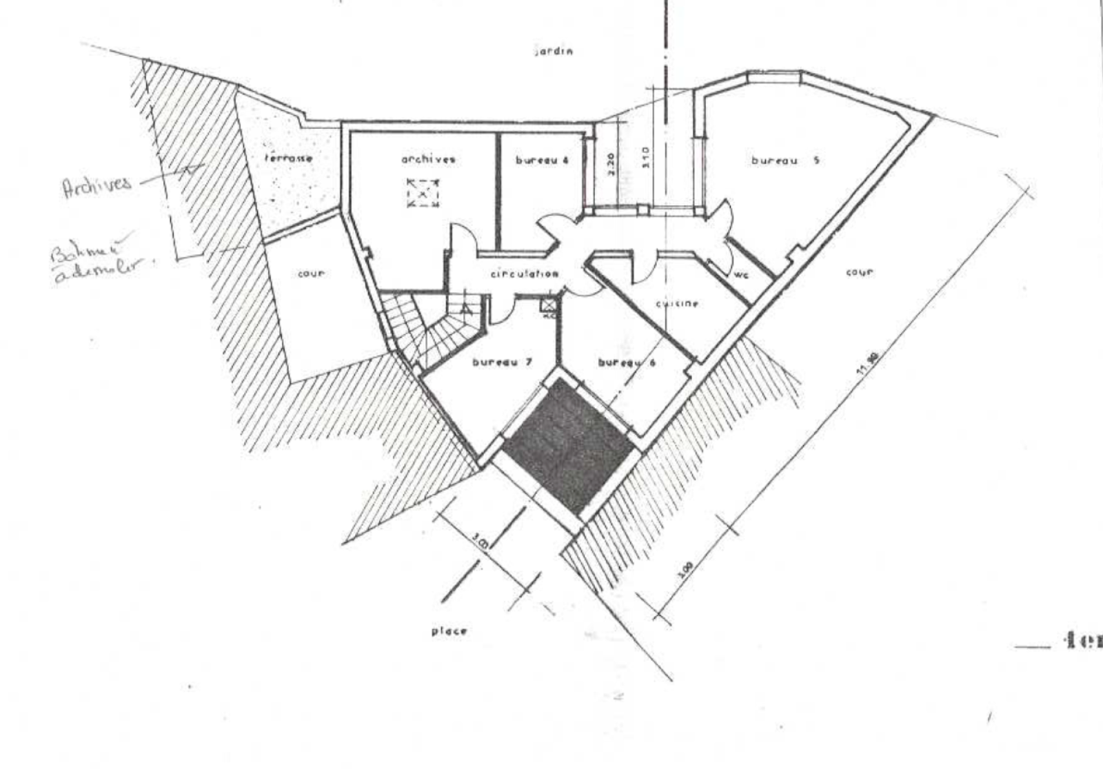 MEULAN CENTRE Bel emplacement pour cet immeuble de 178 m2 comprenant 7 bureaux, salle de réunion et archives.