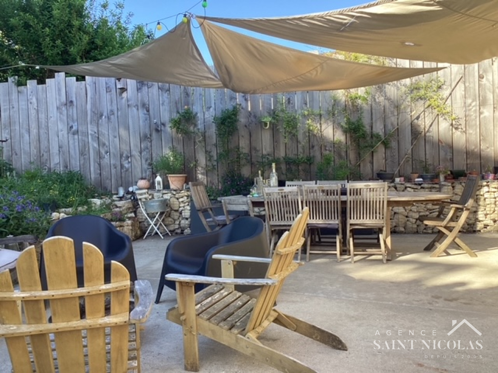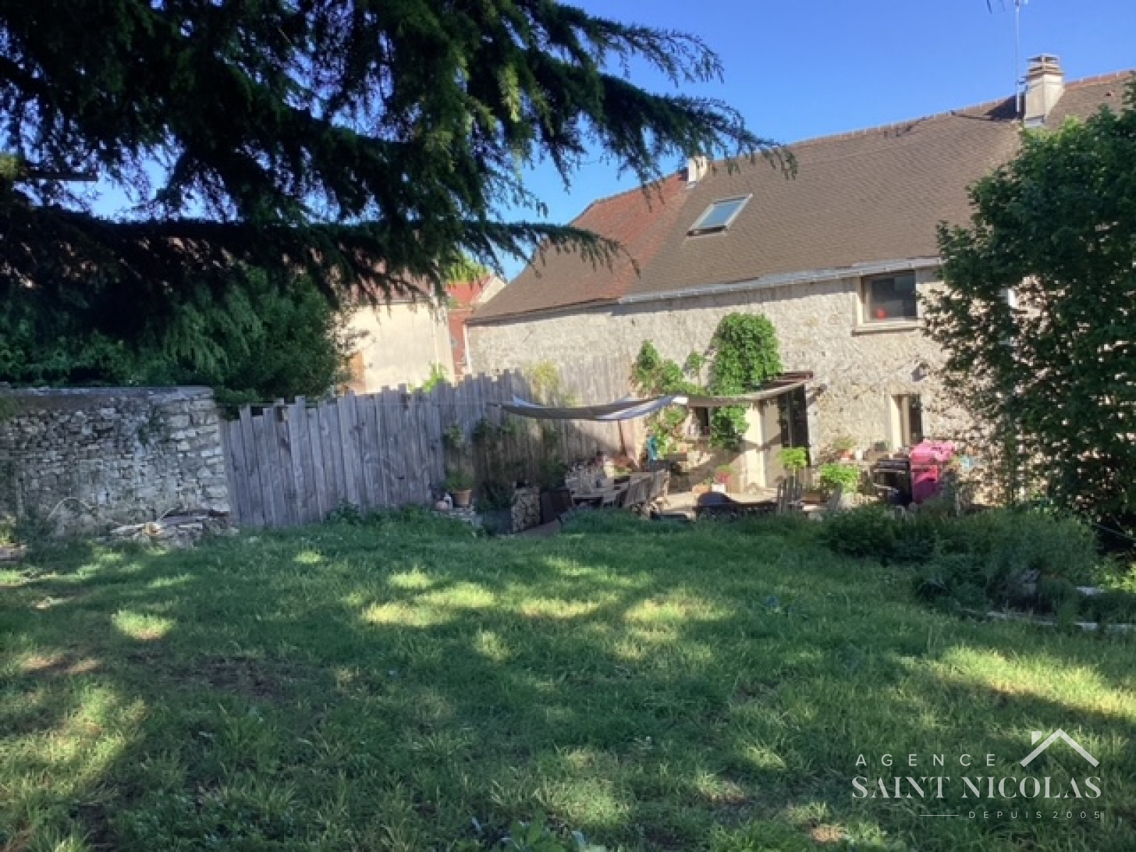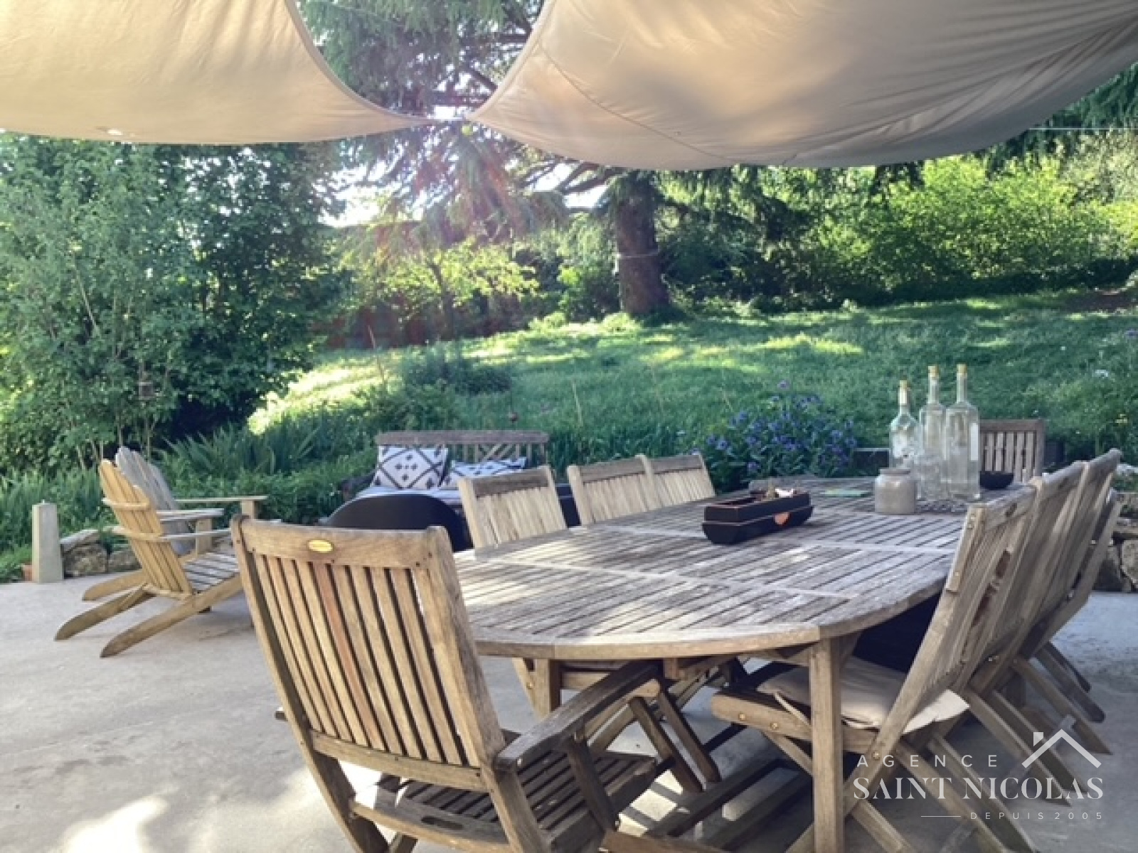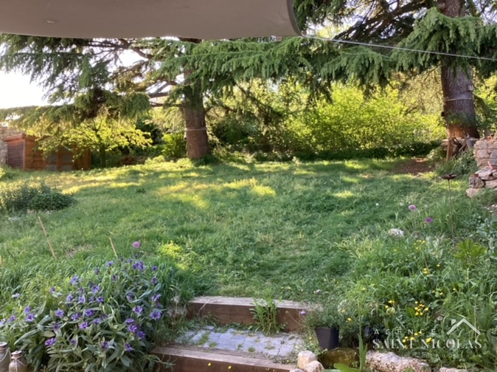 Le jardin planté de deux cèdres majestueux, situé à l’arrière de la maison prolonge une très belle terrasse, sans vis à vis, propice aux barbecue et aux longues soirées d'été.